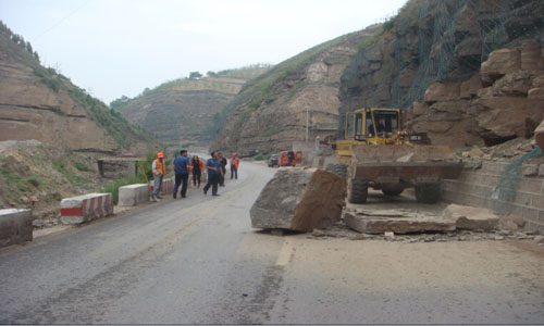 5月22日至23日,吳堡公路段組織人員,調(diào)集機械,對管養(yǎng)路段邊坡防護網(wǎng)內(nèi)的危石進行集中清理,及時消除了公路安全隱患。