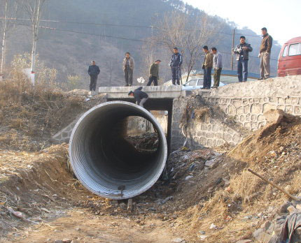 金屬波紋涵管應(yīng)用于公路養(yǎng)護(hù)工程時(shí),待涵身及洞口主體部件運(yùn)至施工現(xiàn)場(chǎng)后,施工單位才能開始拆除舊涵洞的工作,在拆除舊涵洞的同時(shí),抓緊基礎(chǔ)材料的備料工作,備料完成,并經(jīng)檢驗(yàn)合格后方可進(jìn)行基坑的開挖工作。金屬波紋涵管應(yīng)用于新建公路工程時(shí),在定購涵管的同時(shí)可抓緊基礎(chǔ)材料的備料和基坑的開挖工作。