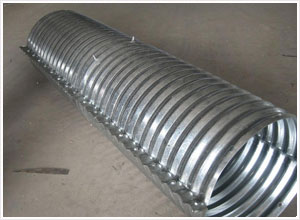 3、鋼波紋涵管施工時,采用分段施工的方法,預(yù)先在原拱涵基底用角鋼并排兩根,長度根據(jù)涵長確定。作鋼質(zhì)涵管推進時的滑軌,波紋涵管管徑根據(jù)工程需要可有不同的規(guī)格,整裝管管徑為0.5m--2.5m;每節(jié)管長度3米左右。采用內(nèi)(外)法蘭螺栓連接。拼裝涵管管管徑為3m--8m。每個圓周方向有4---15塊板組成,板與板搭接高強螺栓緊固。