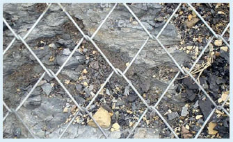 坡面加固,抑制崩塌和風(fēng)化剝落,溜塌的發(fā)生,限制局部或少量落石運(yùn)動(dòng)范圍,有小塊落石或上質(zhì)邊坡時(shí)選用。能滿足可達(dá)100年的防腐壽命要求,但其加固能力僅為70%-80%左右,不適于體積大于1m3的大塊孤危石。