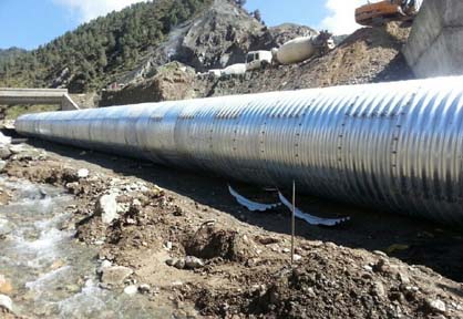 鋼波紋管由于其軸向波紋的存在,使得徑向承載力大大提高,同時由于其軸向波紋的存在,使其具有較好的橫向變形補償特性,因而具有較好的不均勻沉降變形的適應(yīng)能力。但沉降值也要在一定范圍內(nèi),根據(jù)經(jīng)驗值,涵洞沉降值在100厘米內(nèi)。所以遇到特殊地基需要加固處理,尤其是軟土地基。
